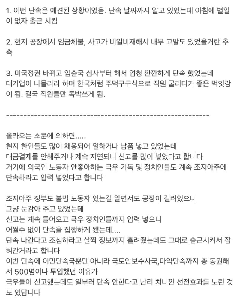 - 미국 조지아 현대차 불체자 단속 현지 소문