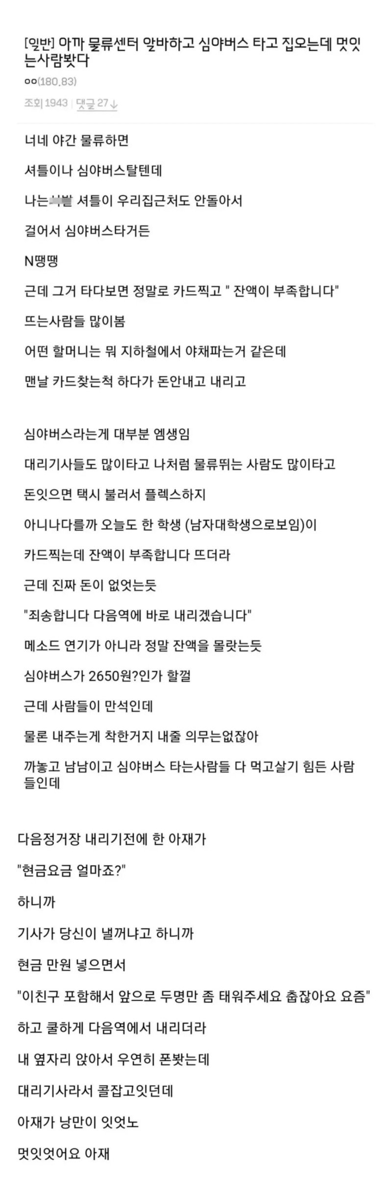 - 심야버스의 낭만넘치는 아재