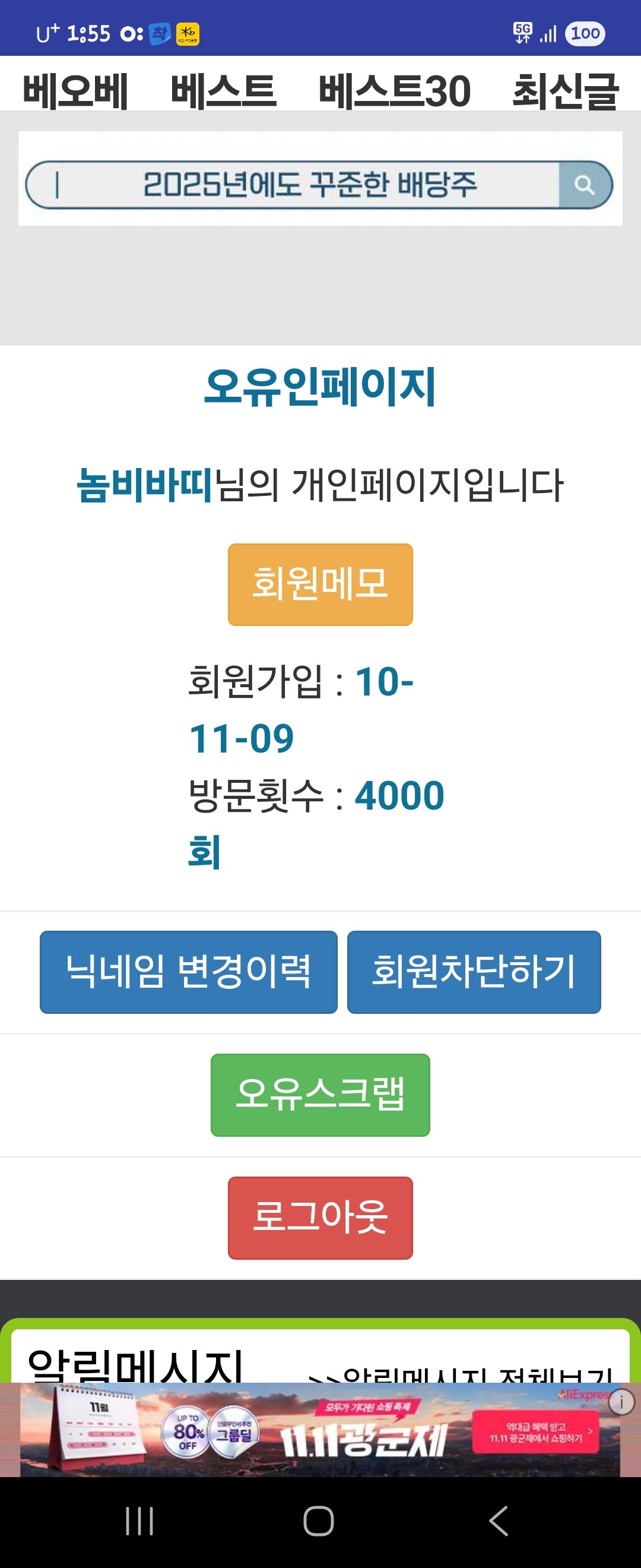 2010년 11월 9일에 오유에 가입을 했었어요
