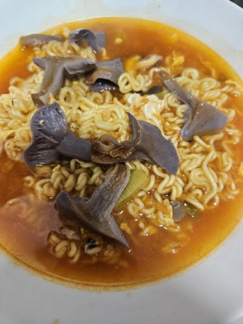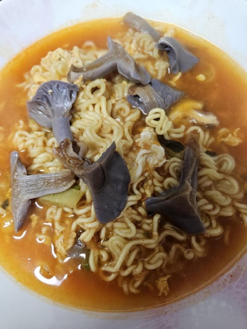 - 보라색 버섯을 넣고 라면 끓인 사람
