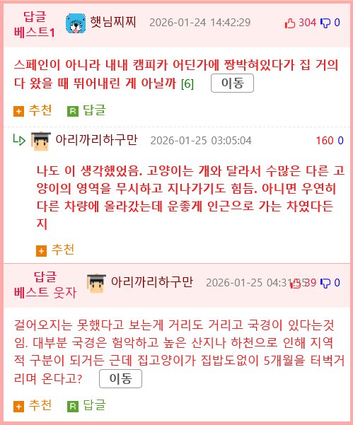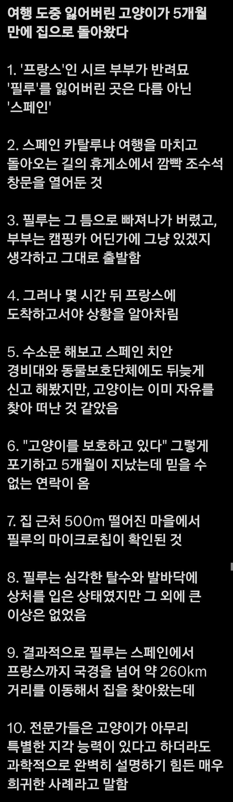 - 여행 도중 잃어버린 고양이가 5개월 만에 집으로 돌아왔다