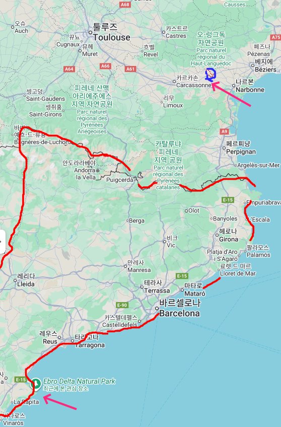 아래 지도에서 넓게 표시한 곳이 카탈루냐 지역입니다. 에브로 델타는 그 지역 최남단