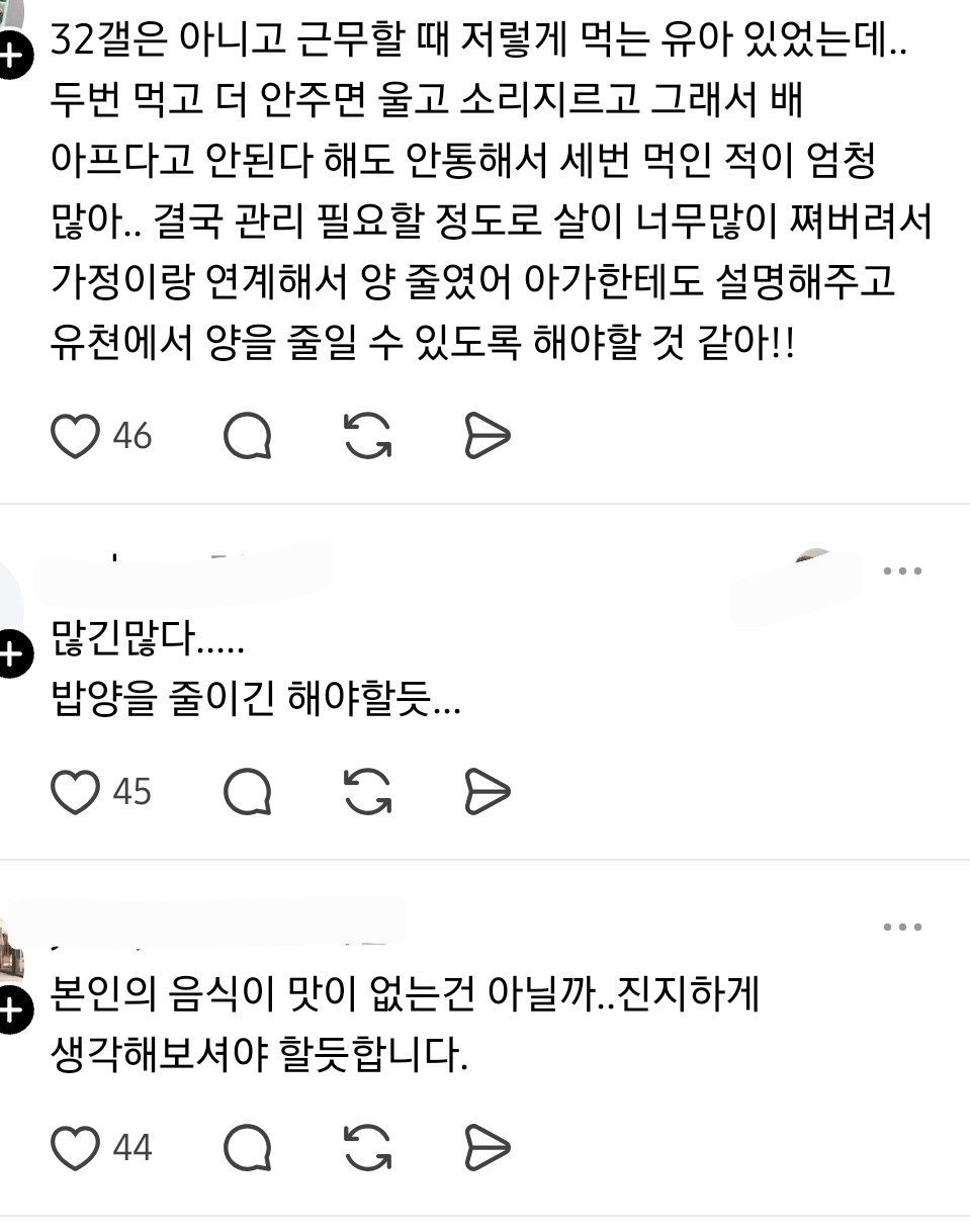 - 애가 어린이집에서 밥을 너무 많이 먹어서 집에서 밥을 안 먹어