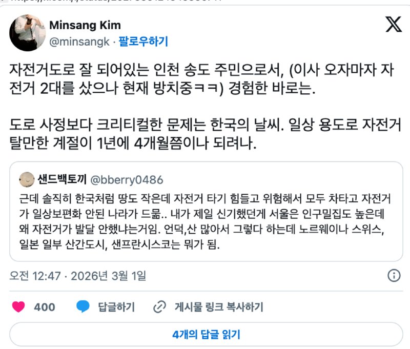 - 한국에 자전거 타는 사람이 적은 이유