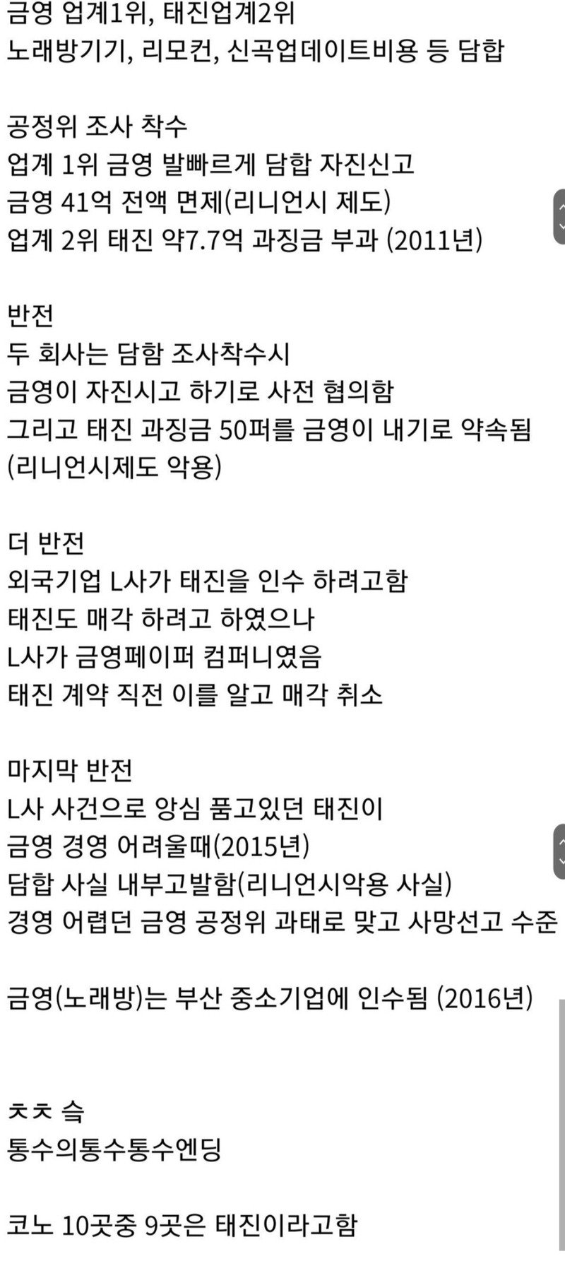 실제로 담합 사실 자진신고 짬짜미 하다가 걸림