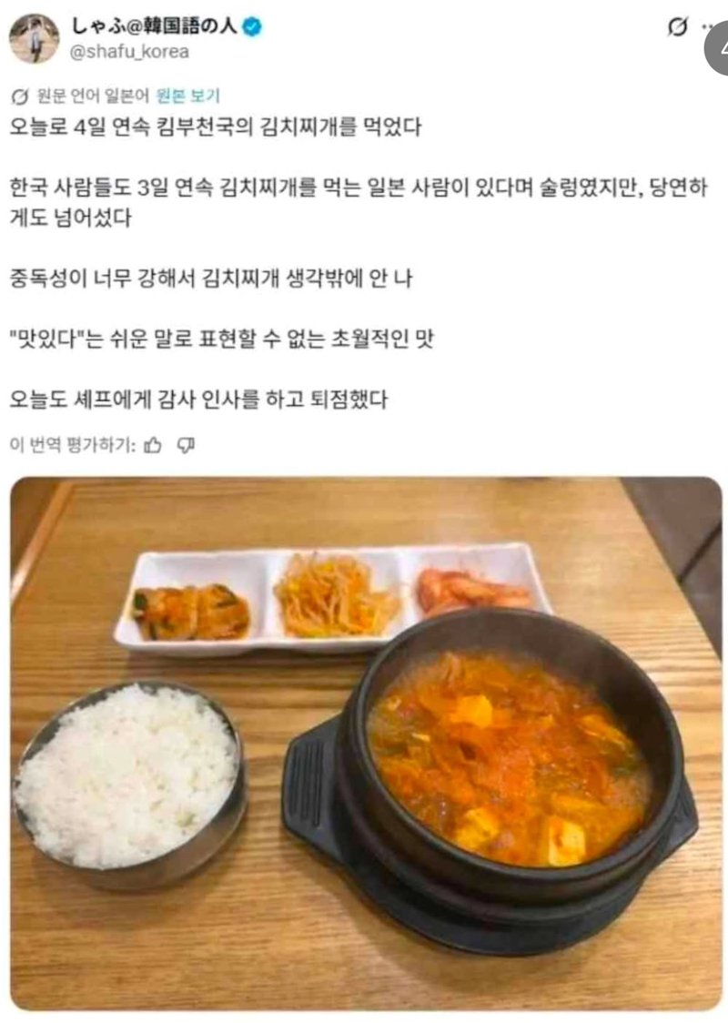 김치찌개가 아니면 하으응 안 되는 몸이 되어 버렸어