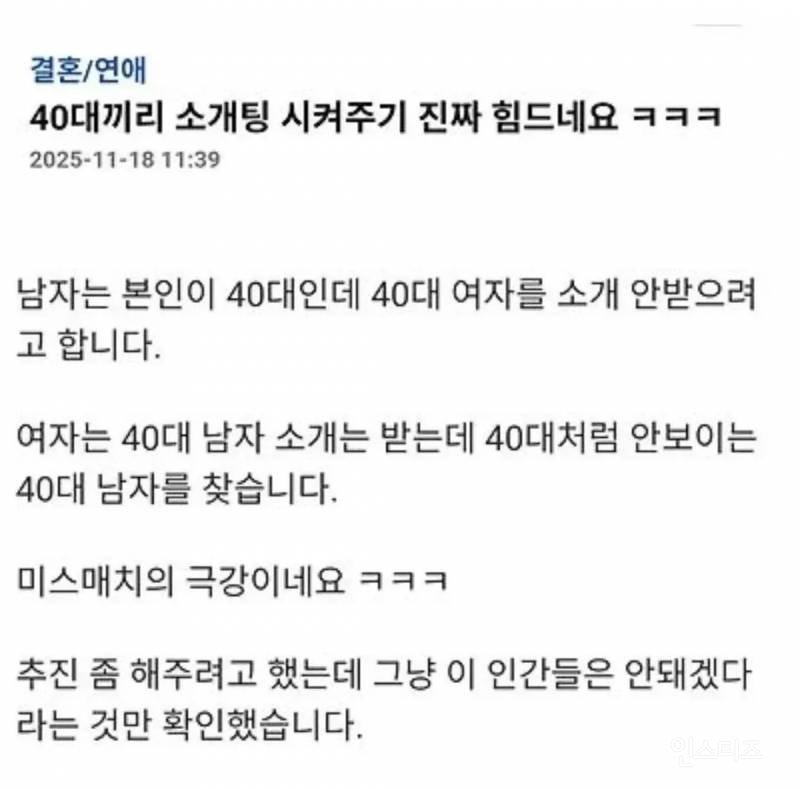 - 40대끼리 소개팅시켜주기 빡세네요.