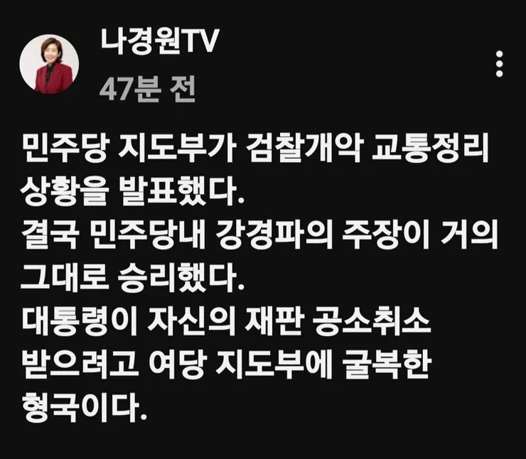 - 추미애 위원장 페북 메시지(검찰개혁 당정청 협의안 관련) | 260317 0914
