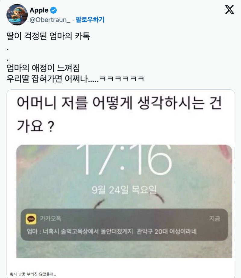- 딸이 걱정 (의심)된 엄마의 카톡