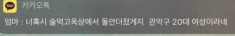 너 혹시 술 먹고 옥상에서 돌 안 던졌겠지. 관악구 20대 여성이라네.