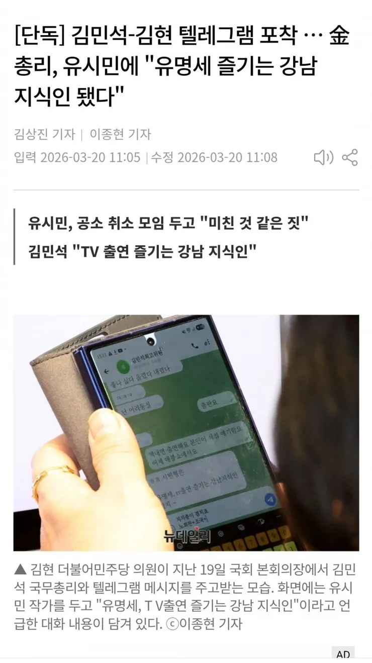 - 김총리 유시민비판 19일 텔레그램 건 포착되었군요.