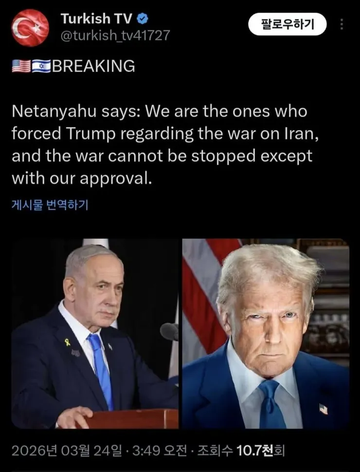 - 네타냐후 우리의 승인 없이는 이란 전쟁을 멈출수 없다