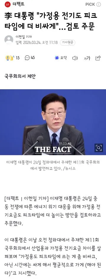 - 李 대통령 가정용 전기도 피크타임에 더 비싸게…검토 주문
