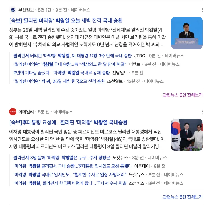 이 새벽에 뉴스속보가 떠서 보니 박왕열 국내 송환 기사네요.