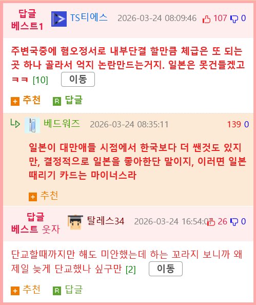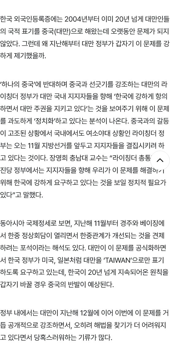 - 대만정부가 요즘 갑자기 한국한테 저러는 이유