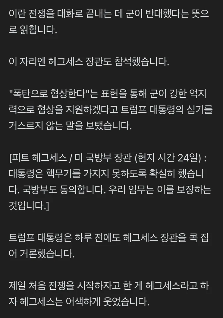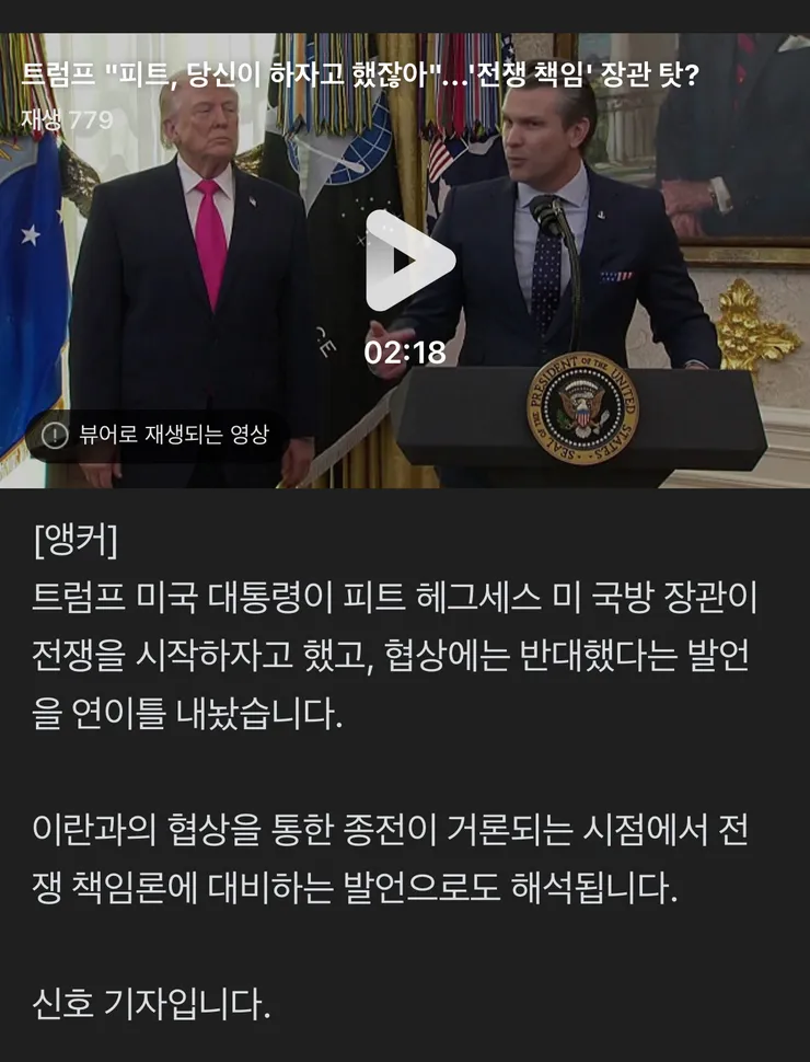 - 트럼프 피트, 당신이 하자고 했잖아...전쟁 책임 장관 탓?