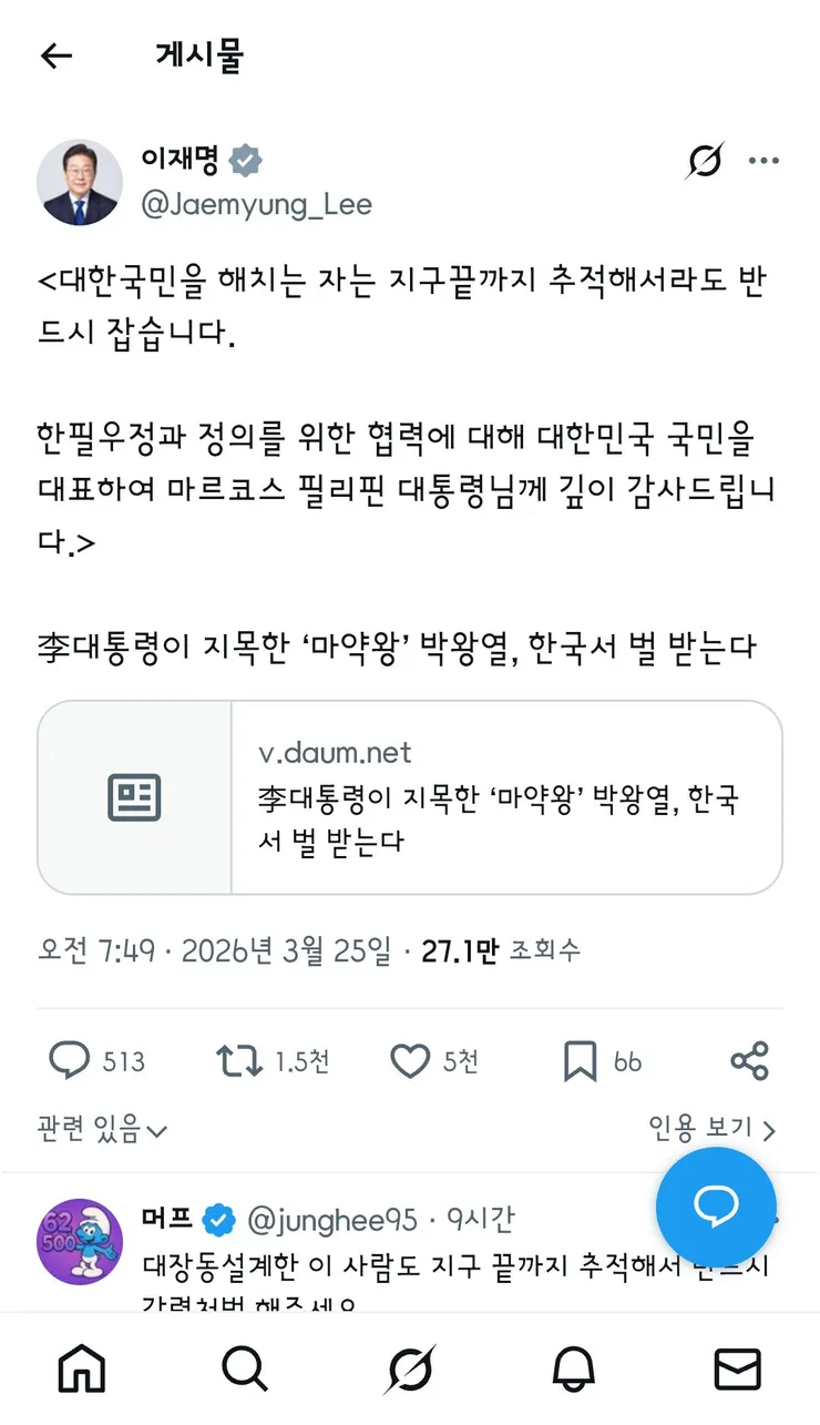 - 이재명 대통령 : 필리핀 마르코스 대통령께 감사드립니다
