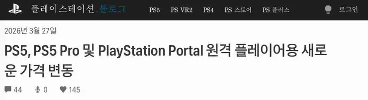 - [SONY] PS5 가격인상 발표. 4월 2일부터 적용.