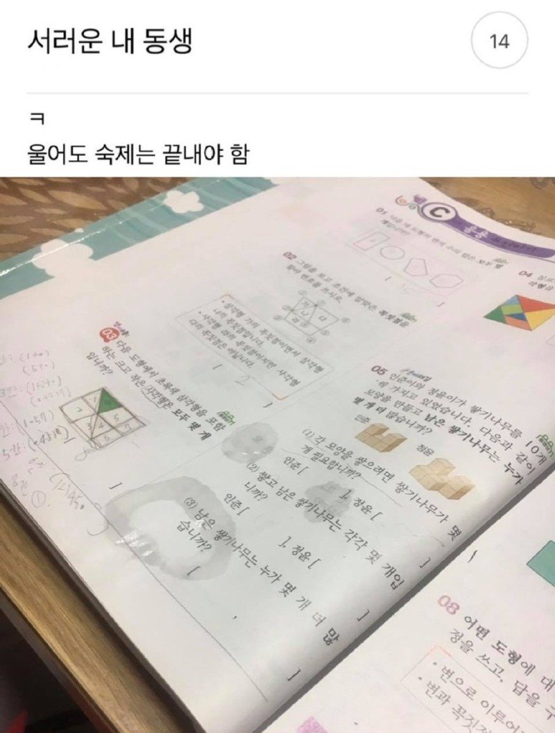 - 울어도 숙제는 끝내야 하는 억울한 내 동생