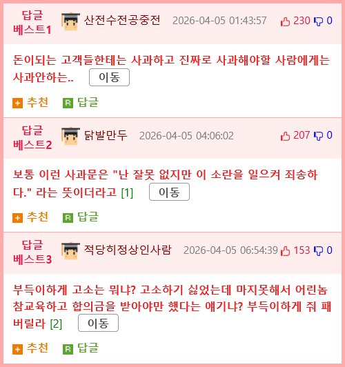- 입주민들에게 사과글쓴 빽다방점주 팩폭하는 사람들