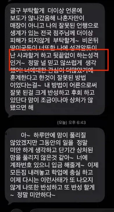 - 청주 알바 갈취 점주 사과문