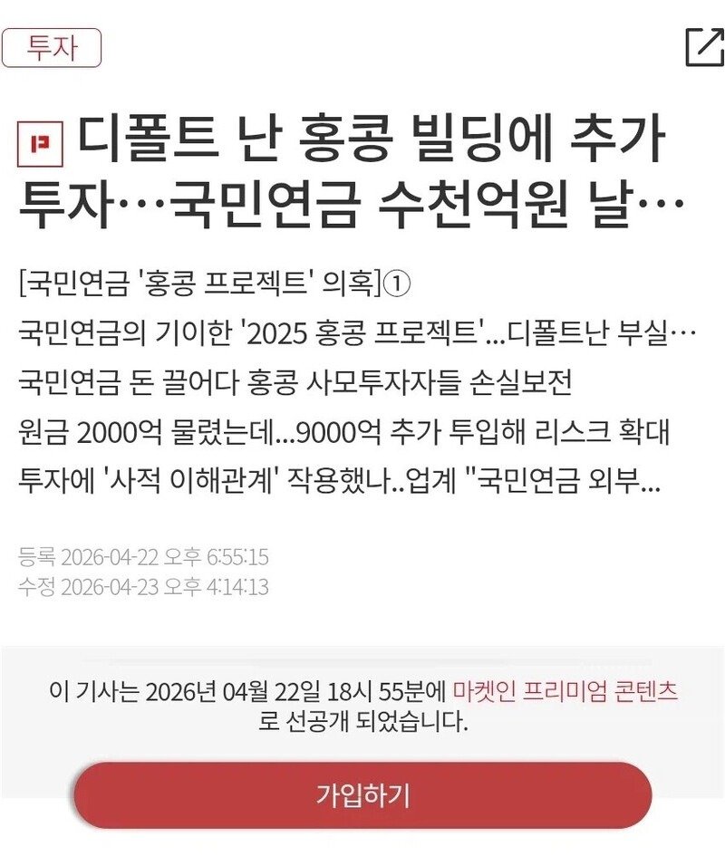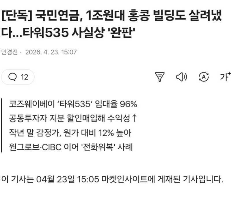 2) 첫번째 기사는 연재되는 기사라 첫 기사와 같은 논조의 기사가 2026-4-24일에 실립니다