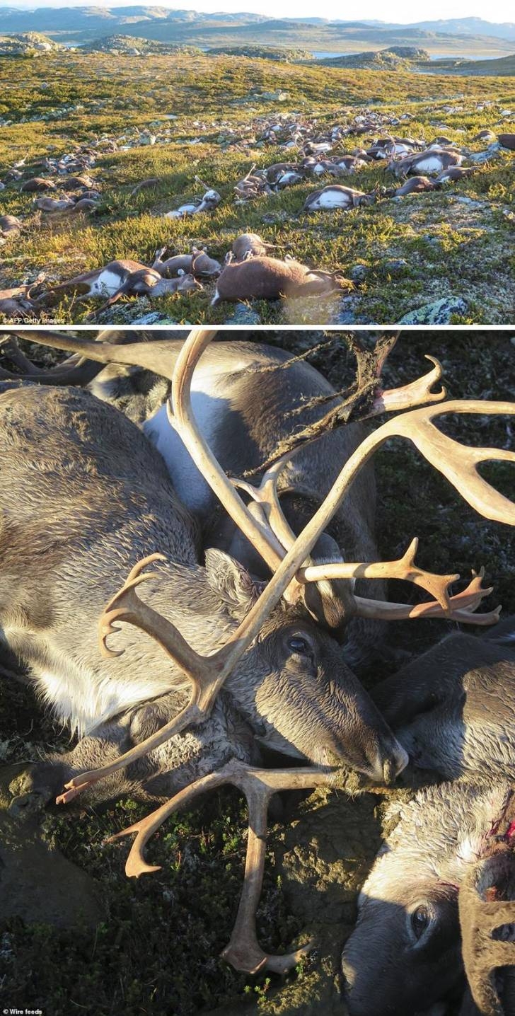 2. 벼락이 쳤고 새끼 70마리를 포함한 323마리의 순록이 집단몰사.